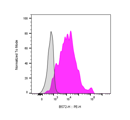 | Recommended Usage | For ELISA applications, this antibody can be used at 0.1-0.3 ug/mL as the detection antibody. For flow cytometric staining, it is recommended to use less than 0.25 ug of this reagent per 0.5-1.0 million cells in a 100 µL volume. Optimal reagent performance should be determined by titration for each specific application. |