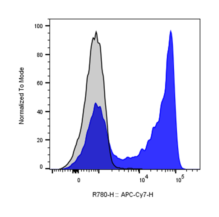 | Recommended Usage | For flow cytometric staining, it is recommended to use 5 µL of this reagent per 0.5-1.0 million cells in a 100 µL volume. Optimal reagent performance should be determined by titration for each specific application. APC/Cyanine7 has an excitation max at 650 nm and an emission max at 774 nm. |