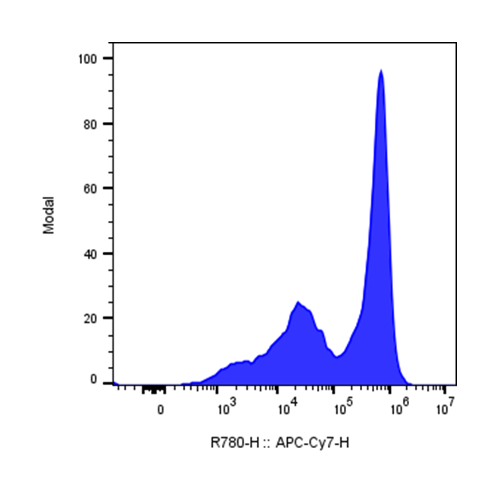 | Recommended Usage | For flow cytometric staining, it is recommended to use 5 µL of this reagent per 0.5-1.0 million cells in a 100 µL volume. Optimal reagent performance should be determined by titration for each specific application. APC/Cyanine7 has an excitation max at 650 nm and an emission max at 774 nm. |
