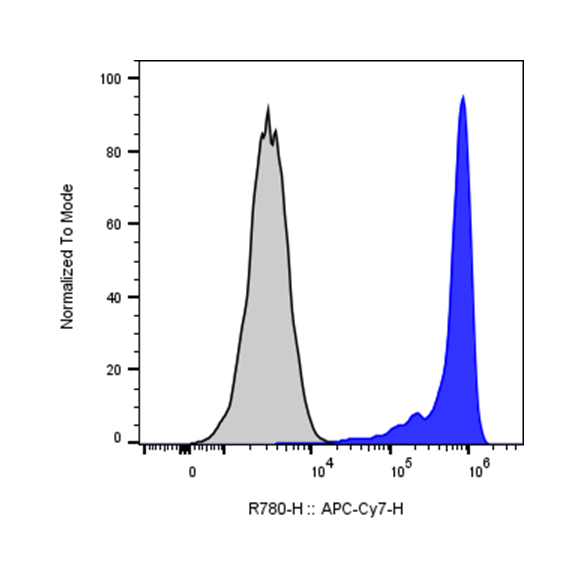 | Recommended Usage | For flow cytometric staining, it is recommended to use 5 µL of this reagent per 0.5-1.0 million cells in a 100 µL volume. Optimal reagent performance should be determined by titration for each specific application. APC/Cyanine7 has an excitation max at 650 nm and an emission max at 774 nm. |