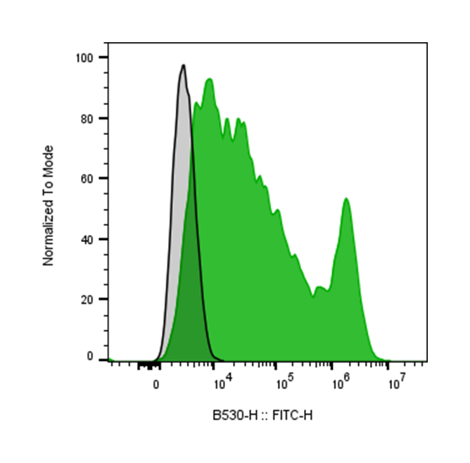 | Recommended Usage | For flow cytometric staining, it is recommended to use 5 uL of this reagent per 0.5-1.0 million cells in a 100 µL volume. Optimal reagent performance should be determined by titration for each specific application. FITC has an excitation max at 493 nm and an emission max at 525 nm. |