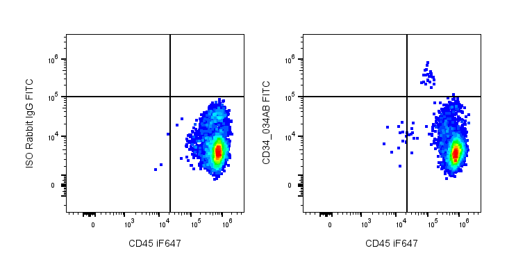 CD34 (gp105–120) is a type I monomeric sialomucin-like glycophosphoprotein with a molecular weight of 105–120 kDa, expressed on hematopoietic stem and progenitor cells, bone marrow stromal cells, capillary endothelial cells, embryonic fibroblasts, and some neural tissues. CD34 serves as a widely used stem cell marker and mediates cell adhesion and lymphocyte homing through interactions with L-selectin and E-selectin ligands. CD34 expression is dynamic and reversible, reflecting specific states of hematopoietic development, including proliferation, differentiation, and altered adhesion properties. Multiple epitopes have been identified based on differential enzymatic sensitivity. Clinically, CD34 is expressed in ~40% of acute myeloid leukemias and 65% of pre-B acute lymphoblastic leukemias, but only 1–5% of acute T-lymphoid leukemias. It is also used to assess stem cell counts for transplantation and can provide prognostic information in certain cancers.