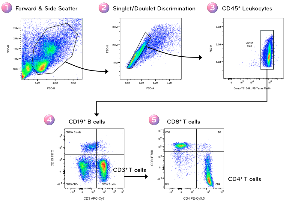 Fig. 5. Stepwise gating workflow for identification of B and T cells