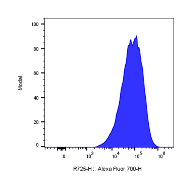 | Recommended Usage | For flow cytometric staining, it is recommended to use 5 µL of this reagent per 0.5-1.0 million cells in a 100 µL volume. Optimal reagent performance should be determined by titration for each specific application. iF700 has an excitation max at 690 nm and an emission max at 710 nm. |
