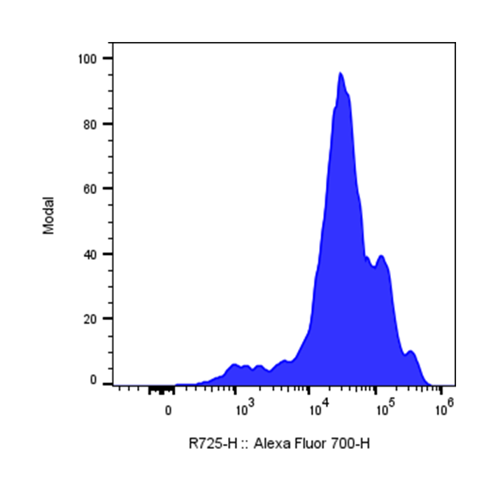 | Recommended Usage | For flow cytometric staining, it is recommended to use 5 µL of this reagent per 0.5-1.0 million cells in a 100 µL volume. Optimal reagent performance should be determined by titration for each specific application. iF700 has an excitation max at 690 nm and an emission max at 710 nm. |