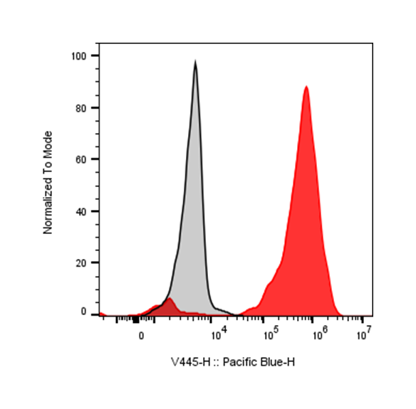 | Recommended Usage | For flow cytometric staining, it is recommended to use 5 uL of this reagent per 0.5-1.0 million cells in a 100 µL volume. Optimal reagent performance should be determined by titration for each specific application. Pacific Blue has an excitation max at 404 nm and an emission max at 455 nm. |