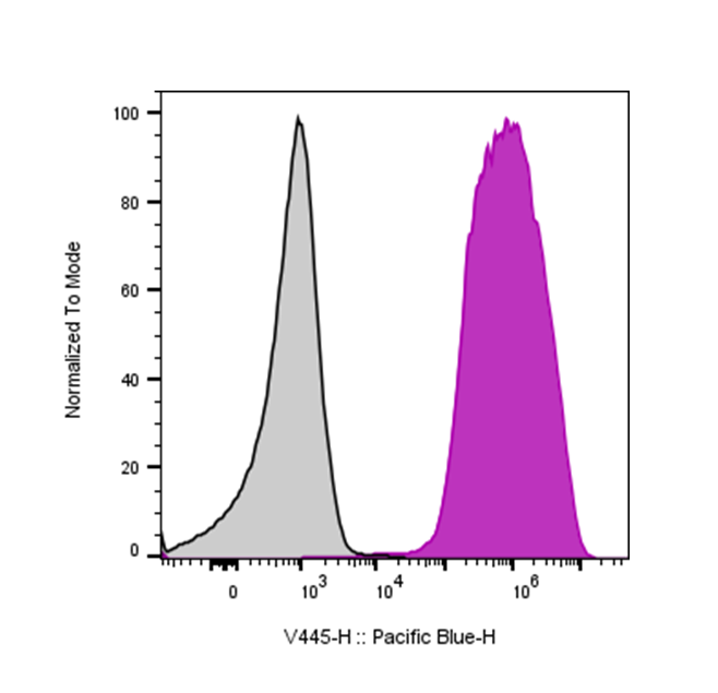 | Recommended Usage | For flow cytometric staining, it is recommended to use 5 µL of this reagent per 0.5-1.0 million cells in a 100 µL volume. Optimal reagent performance should be determined by titration for each specific application. Pacific Blue has an excitation max at 404 nm and an emission max at 455 nm. |