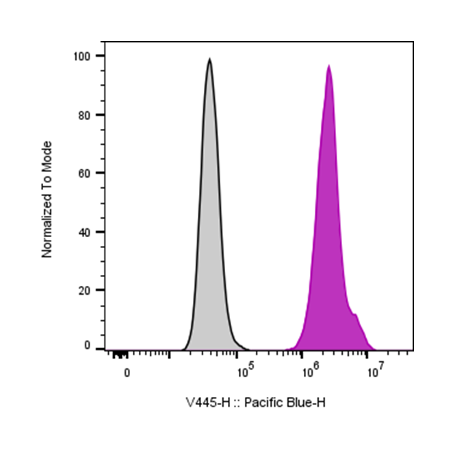 | Recommended Usage | For flow cytometric staining, it is recommended to use 5 µL of this reagent per 0.5-1.0 million cells in a 100 µL volume. Optimal reagent performance should be determined by titration for each specific application. Pacific Blue has an excitation max at 404 nm and an emission max at 455 nm. |