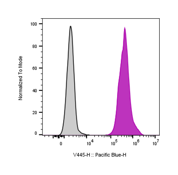 | Recommended Usage | For flow cytometric staining, it is recommended to use 5 µL of this reagent per 0.5-1.0 million cells in a 100 µL volume. Optimal reagent performance should be determined by titration for each specific application. Pacific Blue has an excitation max at 404 nm and an emission max at 455 nm. |