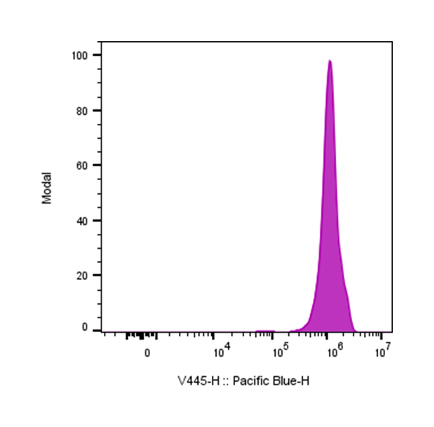| Recommended Usage | For flow cytometric staining, it is recommended to use 5 µL of this reagent per 0.5-1.0 million cells in a 100 µL volume. Optimal reagent performance should be determined by titration for each specific application. Pacific Blue has an excitation max at 404 nm and an emission max at 455 nm. |