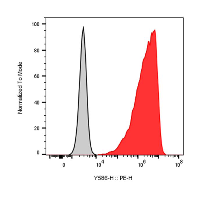 | Recommended Usage | For flow cytometric staining, it is recommended to use 5 µL of this reagent per 0.5-1.0 million cells in a 100 µL volume. Optimal reagent performance should be determined by titration for each specific application. PE has an excitation max at 565 nm and an emission max at 575 nm. |