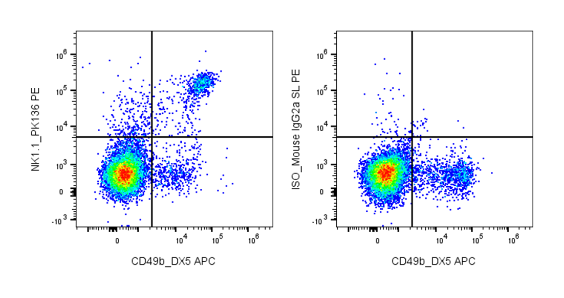 Mouse NK1.1 is a cell surface antigen commonly used as a marker for identifying natural killer (NK) cells in certain mouse strains, particularly C57BL/6. The NK1.1 antigen corresponds to NKR-P1C (also called Klrb1c), a member of the C-type lectin-like receptor family expressed primarily on NK cells and a subset of T lymphocytes known as natural killer T (NKT) cells. NK1.1 plays an important role in innate immunity by contributing to the recognition and elimination of virus-infected cells and tumor cells.