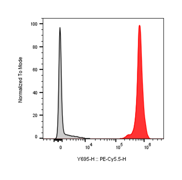 | Recommended Usage | For flow cytometric staining, it is recommended to use 5 µL of this reagent per 0.5-1.0 million cells in a 100 µL volume. Optimal reagent performance should be determined by titration for each specific application. PE/Cyanine5.5 has an excitation max at 565 nm and an emission max at 670 nm. |