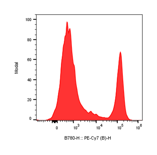 | Recommended Usage | For flow cytometric staining, it is recommended to use 5 µL of this reagent per 0.5-1.0 million cells in a 100 µL volume. Optimal reagent performance should be determined by titration for each specific application. PE/Cyanine7 has an excitation max at 565 nm and an emission max at 774 nm. |