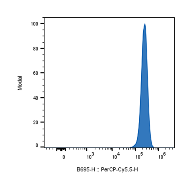 | Recommended Usage | For flow cytometric staining, it is recommended to use 5 uL of this reagent per 0.5-1.0 million cells in a 100 µL volume. Optimal reagent performance should be determined by titration for each specific application. PerCP/Cyanine5.5 has a maximum absorption of 482 nm and a maximum emission of 670 nm. |