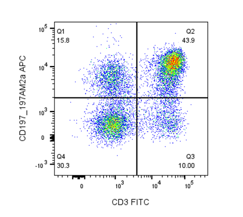 C-C chemokine receptor type 7 is a protein that in humans is encoded by the CCR7 gene. CD197 is a chemokine receptor that binds CCL19 and CCL21. CCR7 is expressed on naïve T cells, regulatory T cell, memory T cell, dendritic cell, mature B cell. Through regulating the homing of CD197 expressing cells into secodory lymphoid organs, it affects the interaction among these cells and thus the immune respose.