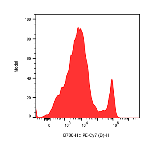| Recommended Usage | For flow cytometric staining, it is recommended to use 5 uL of this reagent per 0.5-1.0 million cells in a 100 µL volume. Optimal reagent performance should be determined by titration for each specific application. PE/Cyanine7 has an excitation max at 565 nm and an emission max at 774 nm. |