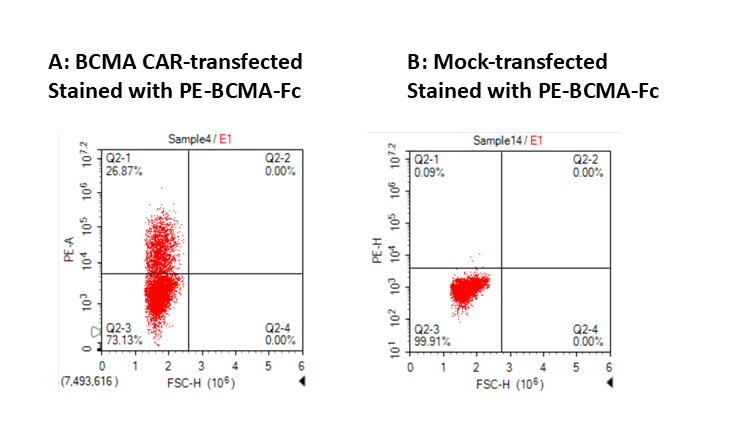 Human BCMA protein (NP_001183.2) (Met1-Ala54) with C-terminus Human IgG1 Fc tag is expressed in HEK293 cells and conjugated to PE.
