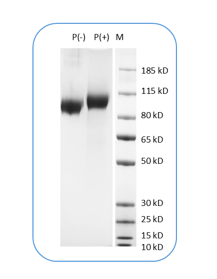 Molecular WeightThe protein has a predicted molecular weight of 78.6 kDa. Under DTT-reducing conditions, it migrates at approximately 100 kDa on SDS-PAGE.