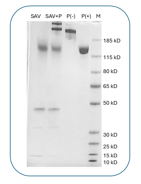 The protein has a predicted molecular weight of 103 kDa. Under DTT-reducing conditions, it migrates at approximately 130-150 kDa on SDS-PAGE.