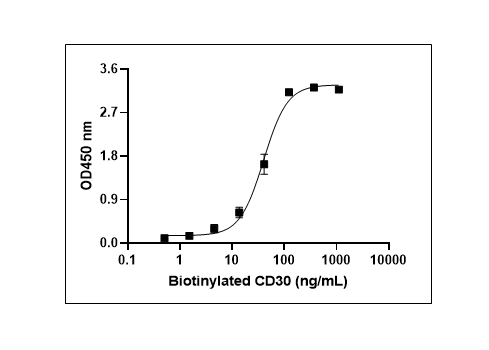 Recombinant Human CD30 protein (phe19-Lys379) with C-terminus His-Avi tag is expressed in CHO cells. This protein was site-specifically labeled with Biotin by BirA ligase.