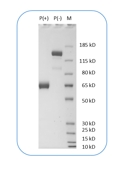 Molecular WeightThe protein has a predicted molecular weight of 55.7 kDa. Under DTT-reducing conditions, it migrates at approximately 60-65 kDa on SDS-PAGE.