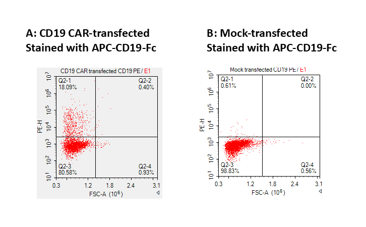 Recombinant Human CD19 Protein (Glu21-Lys291) with C-terminus Fc-tag is expressed in CHO cell and conjugated to APC.