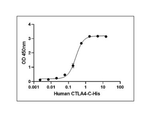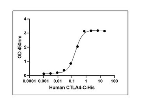 Streptavidin is coated at 2 µg/mL (200 ng/well). Biotinylated Human B7-2 (C-Fc-Avi) is captured on the streptavidin-coated plate at the same concentration. Human CTLA-4 (C-His) binds to the immobilized Biotinylated Human B7-2 in a dose-dependent manner, with an ED₅₀ in the range of 0.2–2 ng/mL.
