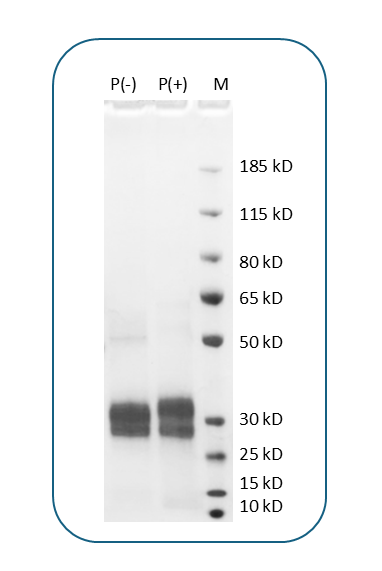 The protein has a predicted molecular weight of 20.9 kDa. Under DTT-reducing conditions, it migrates at approximately 30 kDa on SDS-PAGE.
