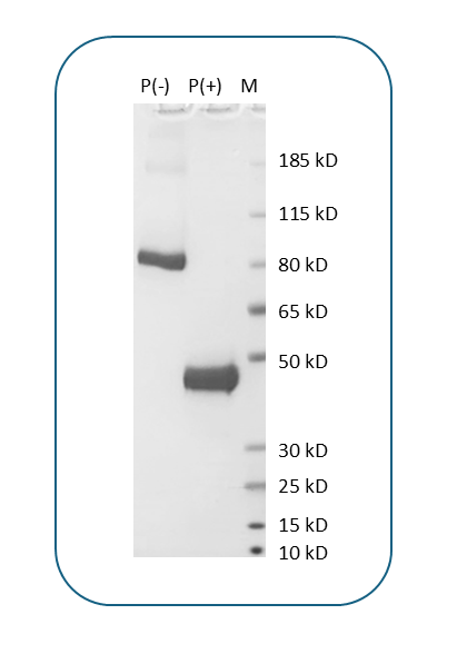 The protein has a predicted molecular weight of 40.2 kDa. Under DTT-reducing conditions, it migrates at approximately 50 kDa on SDS-PAGE .