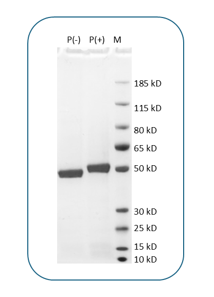 Molecular WeightThe protein has a predicted molecular weight of 44.3 kDa. Under DTT-reducing conditions, it migrates at approximately 55-60 kDa on SDS-PAGE .