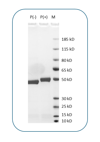Molecular WeightThe protein has a predicted molecular weight of 42.3 kDa. Under DTT-reducing conditions, it migrates at approximately 55 kDa on SDS-PAGE.