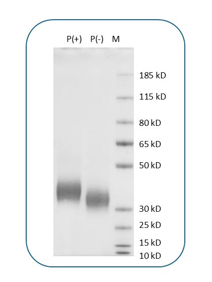 The protein has a predicted molecular weight of 25.3 kDa. Under DTT-reducing conditions, it migrates at approximately 35 kDa on SDS-PAGE.