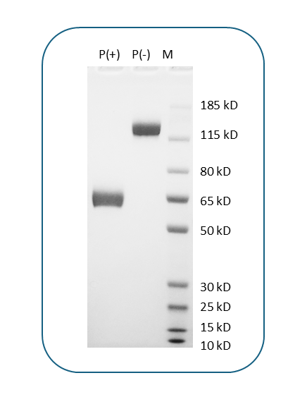 Molecular WeightThe protein has a predicted molecular weight of 50.2 kDa. Under DTT-reducing conditions, it migrates at approximately 65 kDa on SDS-PAGE.