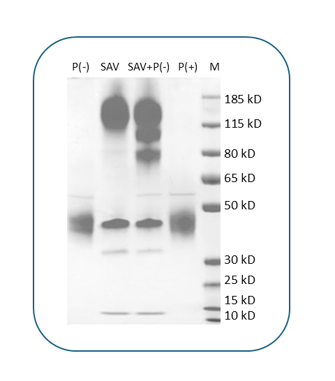 The protein has a predicted molecular weight of 26.1 kDa. Under DTT-reducing conditions, it migrates at approximately 35-45 kDa on SDS-PAGE.