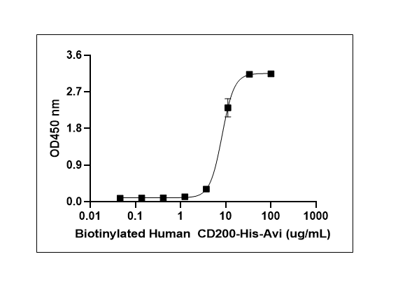 Recombinant Human CD200 (Gln31-Gly232) with C-terminus His-Avi-tag is expressed in CHO cell. This protein was site-specifically labeled with Biotin by BirA ligase.