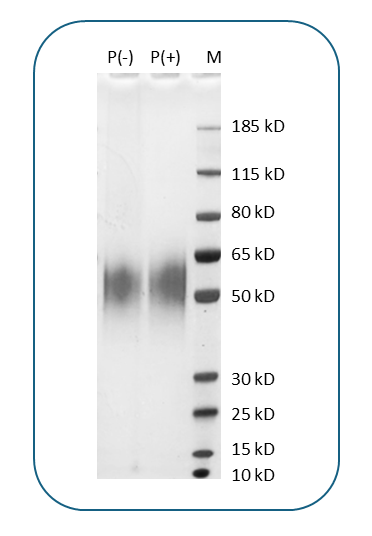 The protein has a predicted molecular weight of 24.7 kDa. Under DTT-reducing conditions, it migrates at approximately 50 kDa on SDS-PAGE.