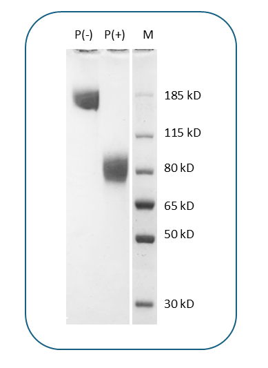 Molecular WeightThe protein has a predicted molecular weight of 51.5 kDa. Under DTT-reducing conditions, it migrates at approximately 90 kDa on SDS-PAGE.