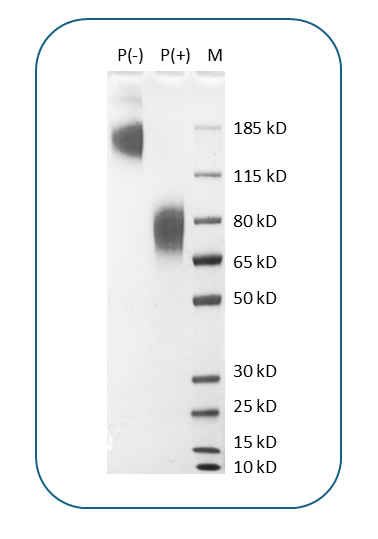 Molecular WeightThe protein has a predicted molecular weight of 49.4 kDa. Under DTT-reducing conditions, it migrates at approximately 90 kDa on SDS-PAGE.