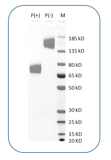 Molecular WeightThe protein has a predicted molecular weight of 52.2 kDa. Under DTT-reducing conditions, it migrates at approximately 65 kDa on SDS-PAGE.