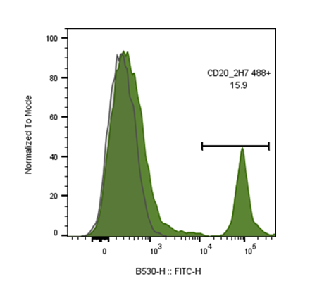 CD20 is a 33-37 kD, four transmembrane spanning protein, also known as B1 and Bp35. CD20 is expressed on pre-B-cells, resting and activated B cells (not plasma cells), some follicular dendritic cells, and at low levels on a T cell subset. CD20 is heavily phosphorylated on activated B cells and malignant B cells. Homo-oligomeric complexes of CD20 are thought to form Ca2+ conductive ion channels in the plasma membrane of B cells. The CD20 molecule is involved in B-cell activation and is associated with various Src family kinases (Lyn, Lck, Fyn). It exists in a complex with MHC class I and II, CD53, CD81, and CD82. The epitope recognized by clone 2H7 has been mapped to the sequence YNCEPANPSEKNSPST, which lies in the large extracellular loop of human CD20.