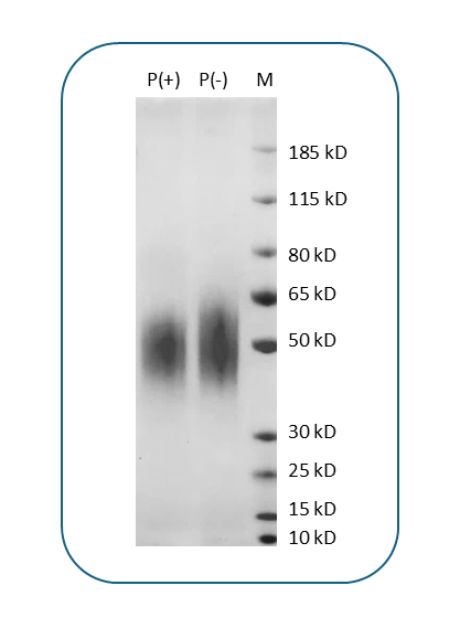 The protein has a predicted molecular weight of 27.5 kDa. Under DTT-reducing conditions, it migrates at approximately 45 kDa on SDS-PAGE.