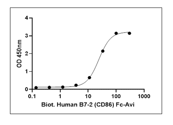 Recombinant Human B7-2 (CD86) (Leu20-Pro247) with C-terminus Fc-Avi-tag is expressed in CHO cell. This protein was site-specifically labeled with Biotin by BirA ligase.