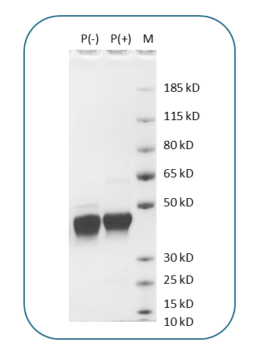 Molecular WeightThe protein has a predicted molecular weight of 23.8 kDa. Under DTT-reducing conditions, it migrates at approximately 40 kDa on SDS-PAGE.