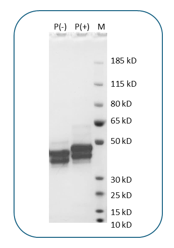 The protein has a predicted molecular weight of 22.9 kDa. Under DTT-reducing conditions, it migrates at approximately 40 kDa on SDS-PAGE.