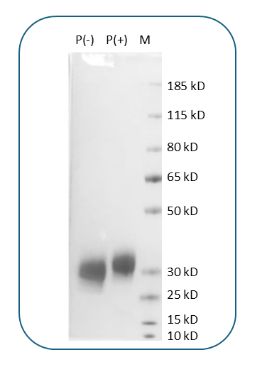 The protein has a predicted molecular weight of 24.4 kDa. Under DTT-reducing conditions, it migrates at approximately 35 kDa on SDS-PAGE.