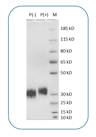 The protein has a predicted molecular weight of 24.4 kDa. Under DTT-reducing conditions, it migrates at approximately 35 kDa on SDS-PAGE.