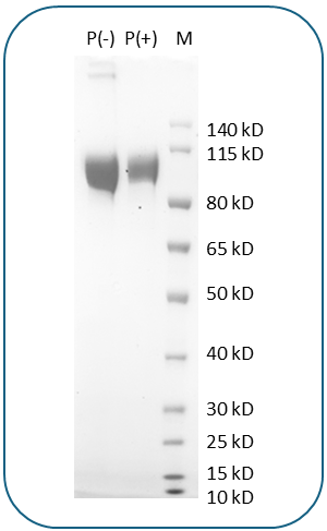 This protein has a predicted molecular weight of 86.5 kDa. Under DTT-reducing conditions, the protein migrates at approximately 90-100 kDa on SDS-PAGE.