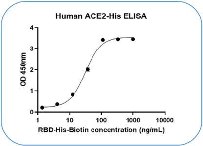 Human ACE2 protein (Gln18-Ser740) with N-terminus His tag is expressed in HEK293 cells.