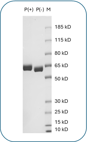 This protein has a predicted molecular weight of 60.1 kDa. Under DTT-reducing conditions, the protein migrates at approximately 65 kDa on SDS-PAGE.